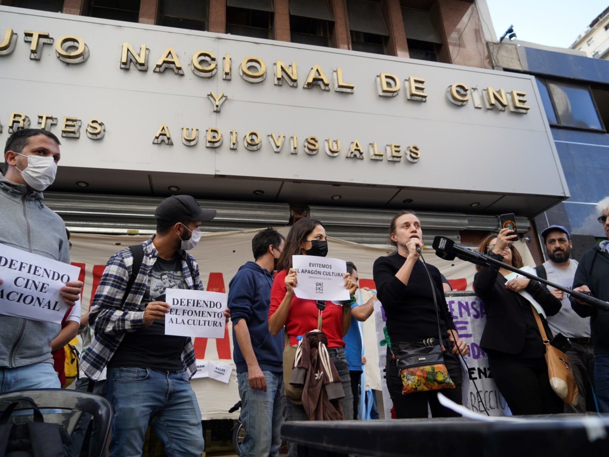 Según el comunicado leído en la protesta, el organismo subejecutó el 67% de su presupuesto, provocando una crisis sin precedentes: menos producción, festivales afectados, programas provinciales en pausa y solo seis estrenos en lo que va del año, frente a los 200 anuales habituales.